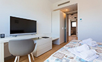 Apartman Unique 22 opremljen je sa jednom spavaćom sobom s velikim bračnim krevetom, dnevni boravak s kvalitetnim ležajem na razvlačenje za 2 osobe, 2 LED TV-a s više od 400 SAT programa; po jedan u dnevnom boravku i spavaćoj sobi. Kuhinja sa štednjakom, hladnjakom, perilicom posuđa, mikrovalnom pećnicom, čajnikom, tosterom te aparatom za kavu. Lođa s pogledom na more, radni stol s priborom, 2 kupaonice s tuš-kadama, tuš-slušalicama i kišnim tušem, sušilo za kosu, ručnici i posteljina, toaletni pribor, osigurano parking-mjesto u zatvorenoj garaži unutar objekta, apartman je zvučno izoliran, mogućnost korištenja igraonice, praonice, sušionice te peglaone.